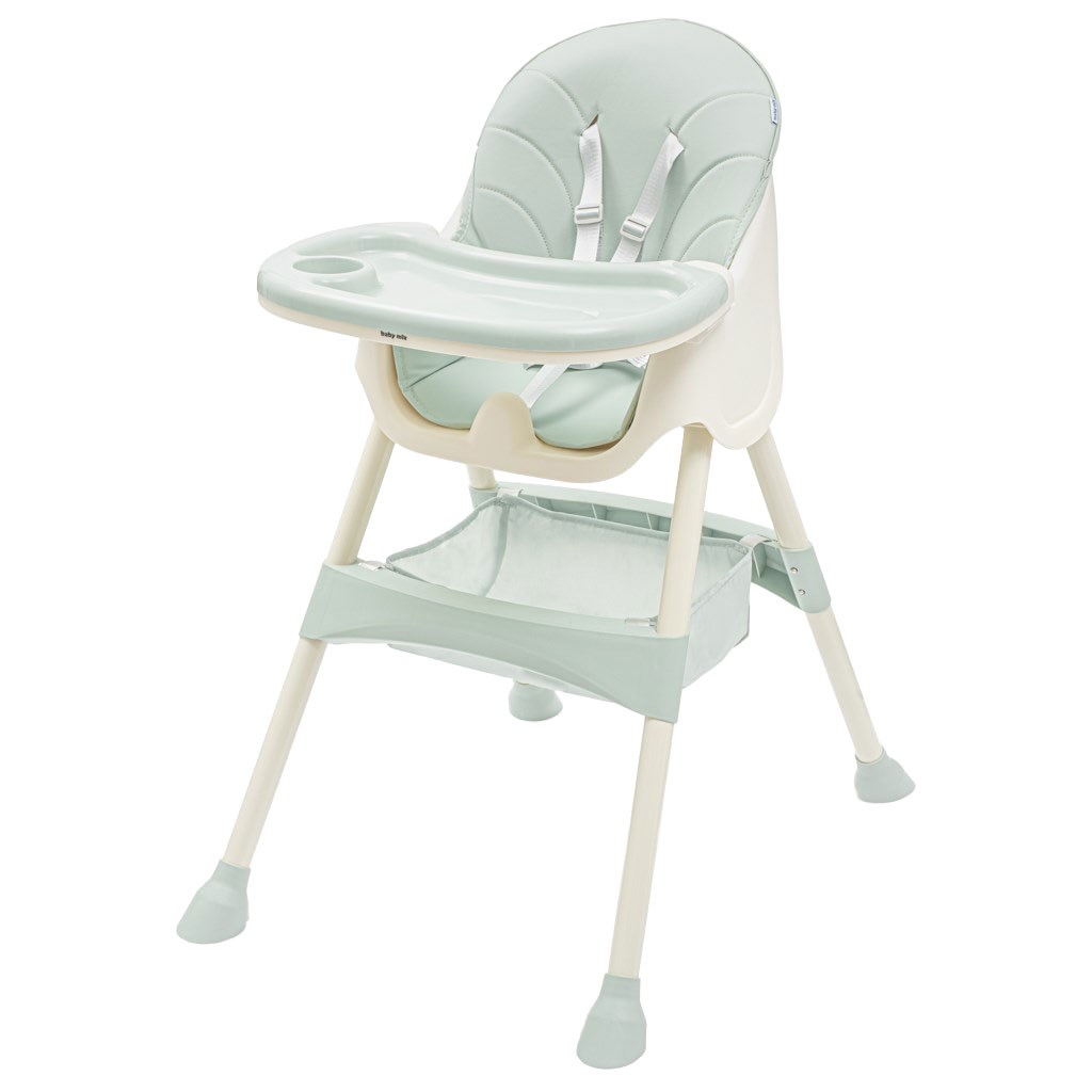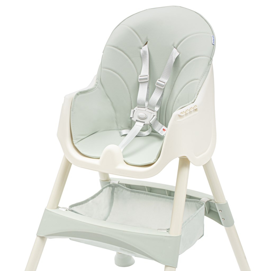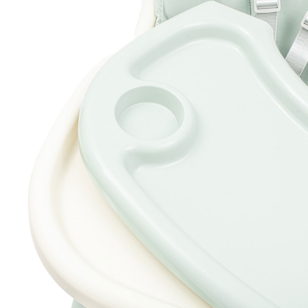 Otroška jedilna stolčka Baby Mix ima vse funkcije, ki olajšajo vsakodnevno hranjenje: nastavljiv dvojni pladenj, 5-točkovni varnostni pasovi, odstranljiva prevleka iz eko usnja, opora za noge, velik tekstilni koš, protislipne noge.