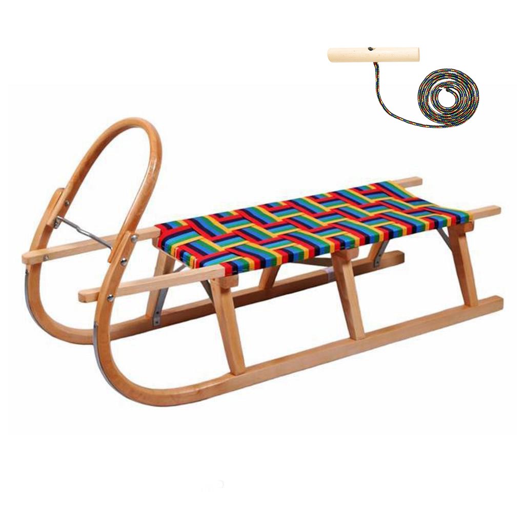 Klasične otroške sani češke blagovne znamke New Baby, namenjene rekreacijskemu sankanju. Narejene so iz kakovostnega bukovega lesa in so idealne za vsako zimsko zabavo. Sani nudijo dovolj prostora za enega otroka in odraslega ali dva odrasla. Sedež je spletan iz tekstilnih nepremočljivih trakov - barvna izvedba se razlikuje glede na trenutno ponudbo. Spodnji del je opremljen z jekleno drsno površino.