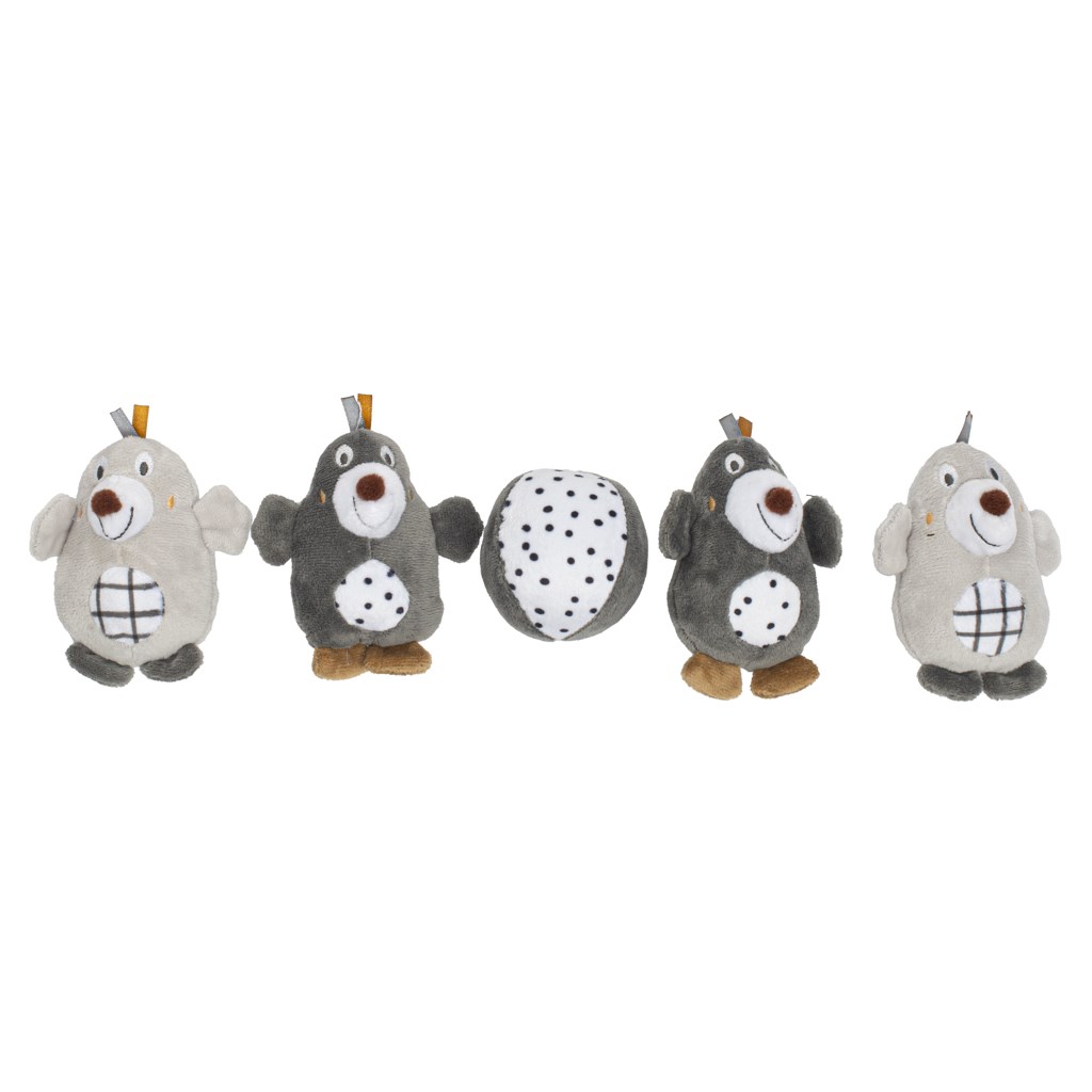 Vrteč nad posteljico s plišastimi figuricami pomaga razvijati vidno-gibalno koordinacijo gibov otroka in umirja otroka pred spanjem. Po zavijanju glasbenega mehanizma se figurice vrtijo in igra melodija. Namenjeno otrokom, ki se še ne gibljejo samostojno. Odlična igrača za dojenčke! Višina posameznih figuric približno 12 cm.