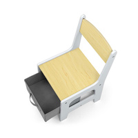 Nežna bela in siva barva ter shranjevalni predali, ki so lahko zabavni za otroke, povečujejo privlačnost naše garniture; otroci radi skrivajo svoje zaklade v njih. Nedvomna prednost uravnotežene barvne zasnove je v tem, da predmeti, s katerimi so otroci v predšolski dobi obkroženi, v veliki meri vplivajo na njihov pravilen razvoj. Če malčkom zagotovimo mirno in harmonično okolje, dosegajo boljše rezultate. Garnitura Sven - miza in dve stoli - natančno uresničuje te predpostavke in je recept za potovanje otroka k razvoju in samostojnosti.