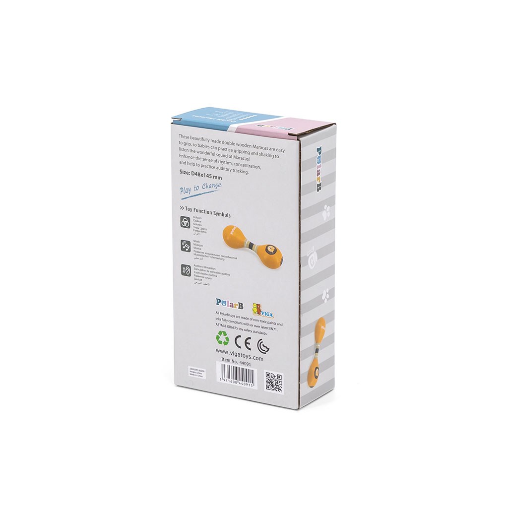 Prva avantura z glasbo? Lesena dvojna rumbakula je enostavna za uporabo, prilagojena majhnim rokam in bo popolna kot prvi instrument vašega otroka. Izdaja izjemno prijeten nežni zvok, ki prija ušesu, in otrok se lahko pri njenem prijemanju valja ter pleše v ritmu.