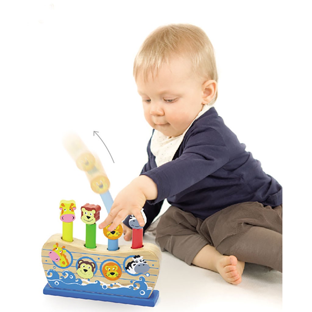 Lesena igra Noetova arka podjetja Viga je igrača, ki jo bo vzljubilo vsako otroško srce. Naloga otroka je "katapultirati" živali s pritiskom na glavice živali, ki so nameščene na barvni leseni podstavni. Figurice žirafe, opice, leva in zebre se nasmehnejo dojenčku, hkrati pa se otrok lahko nauči prepoznati, katera žival je bila postavljena na leseno glavico.