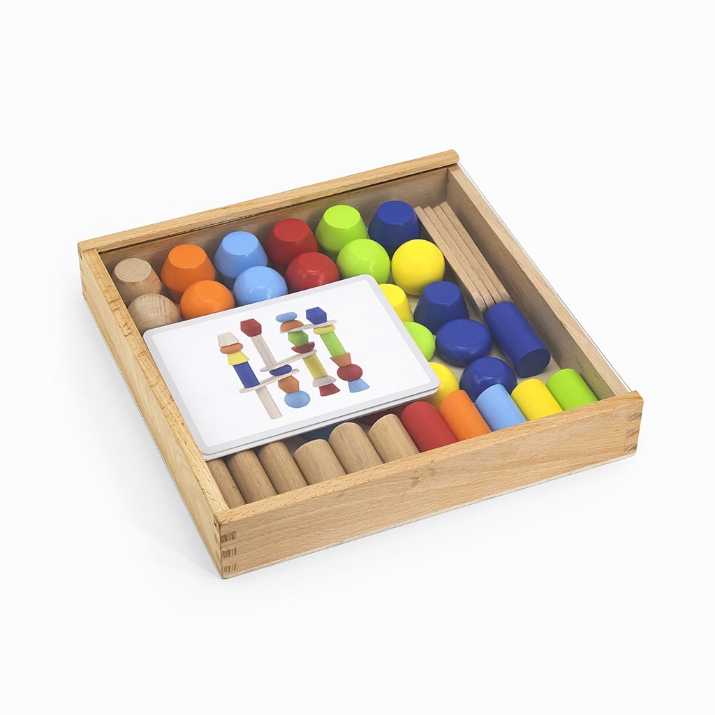 Igra temelji na sestavljanju struktur po predlogah na igračih kartah ali po lastni domišljiji. Karte imajo tri ravni težavnosti. Med igro otroci odkrivajo oblike, barvne kombinacije in velikosti. Hkrati razvijajo praktične spretnosti, domišljijo, ustvarjalnost ter logično mišljenje, prav tako pa tudi natančnost rok in koordinacijo oko-roka.