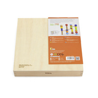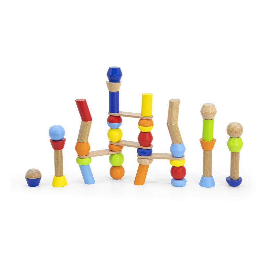 Celoten komplet je narejen iz bukovega lesa in pobarvan z netoksičnimi barvami v umirjenih odtenkih, ki pritegnejo pozornost in spodbujajo k igri, obenem pa zagotavljajo veliko zabave. Naša prednostna naloga je varnost otrok in najvišja kakovost igrač, zato pazimo, da so barve, ki jih uporabljamo za barvanje naših igrač, netoksične in izpolnjujejo varnostne standarde (EN71 in ASTM).