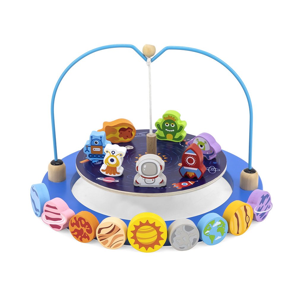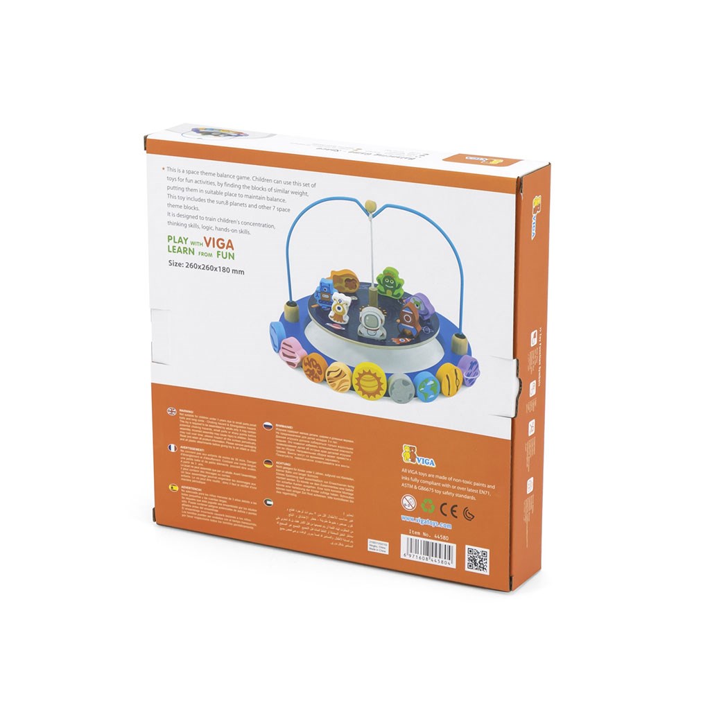 Gre za ravnotežno igro z vesoljskim motivom. Otroci se lahko s to igračo igrajo tako, da iščejo bloke podobne teže in jih postavljajo na pravo mesto, da ostanejo v ravnotežju in ne padejo.