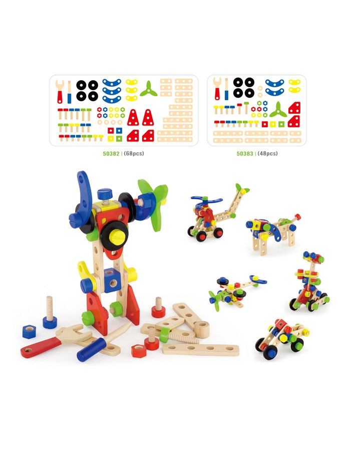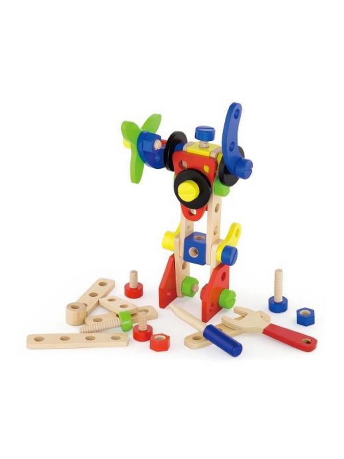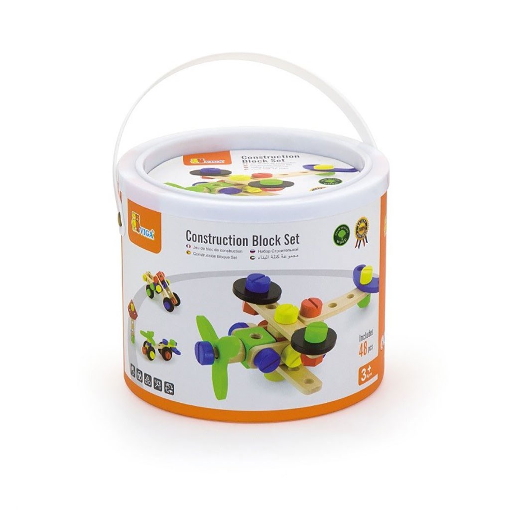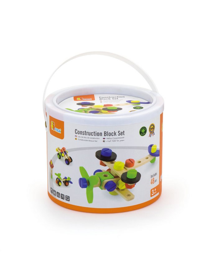 Čudovita lesena konstrukcijska igrača Viga. Paket vsebuje 48 delov, s katerimi lahko zgradite letalo, robota, avto in še mnoge druge stvari. Igrača je idealna za vse, ki ljubijo ustvarjanje nečesa novega. Konstrukcija prihaja v plastičnem vedru z ročajem. Paket vsebuje tudi brošuro, ki navdihuje vaše otroka k ustvarjalni zabavi. Ta fantastična igrača deluje kot didaktično orodje. Igrača pomaga izboljšati ročne spretnosti in gibčnost, uči otroka prepoznavati oblike in barve ter razvija čut za opazovanje. Igrača je izdelana iz lakiranega lesa. Naša prednost je varnost in kakovost naših izdelkov, zato barve, uporabljene na igračah, niso strupene in ustrezajo varnostnim standardom (EN71 in ASTM). Primerna je za otroke od 3. leta. Igrača je odlična izbira za čudovito darilo, ki ga bodo vaši otroci vzljubili.
