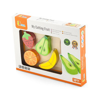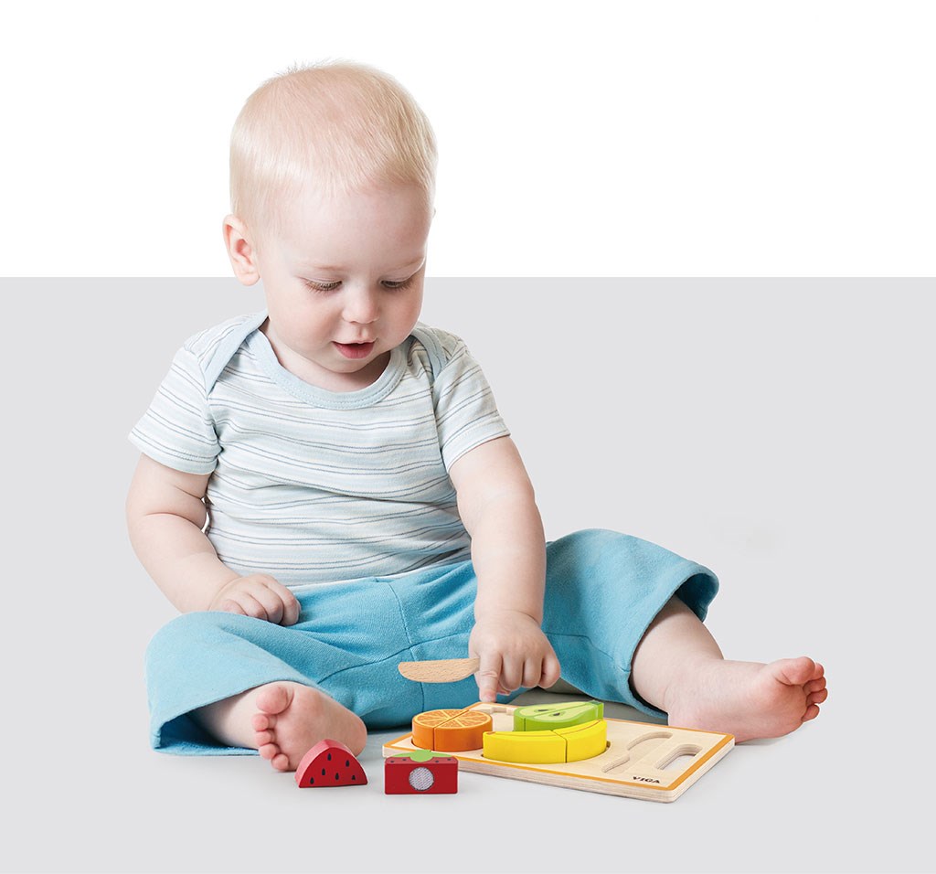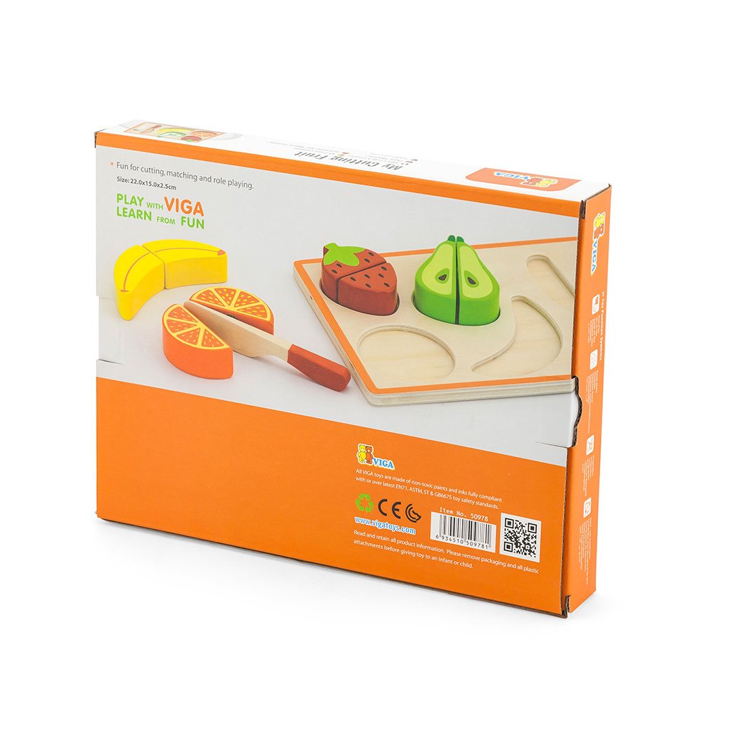 Set za rezanje podjetja Viga je idealna igrača, ki spodbuja domišljijo otrok. Med skupno igro lahko vsak starš svoje otroke nauči, kako v prihodnosti uporabljati ostre kuhinjske pripomočke. Kot bonus so vsi izdelki povezani z ježkom, kar omogoča njihovo ponovno sestavljanje. Celoten set je izdelan iz lakiranega lesa in pobarvan z nestrupenimi barvami.
