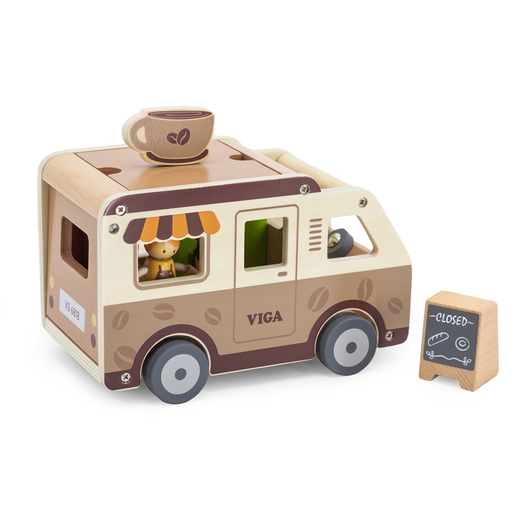 Lesena mobilna kavarnica je izjemno kreativna in skrbno izdelana igrača, ki otroke popelje v fascinanten svet kavarnskih avantur. Zaradi realističnih elementov lahko otroci prevzamejo vlogo barista in strežejo svojim „strankam“, kar igro naredi zelo privlačno. Kavarnica ne le zabava, ampak tudi spodbuja razvoj otroka na več načinov: razvija domišljijo, motoriko in socialne veščine. Igra priprave kave in postrežbe jedi razvija empatijo ter komunikacijske sposobnosti ter uči otroke interakciji v različnih situacijah.