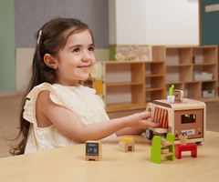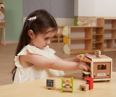 Kavarnica iz lesa, dokončana v prijaznih barvah, je odlično orodje za razvoj domišljije in socialnih veščin pri igrah vlog.
