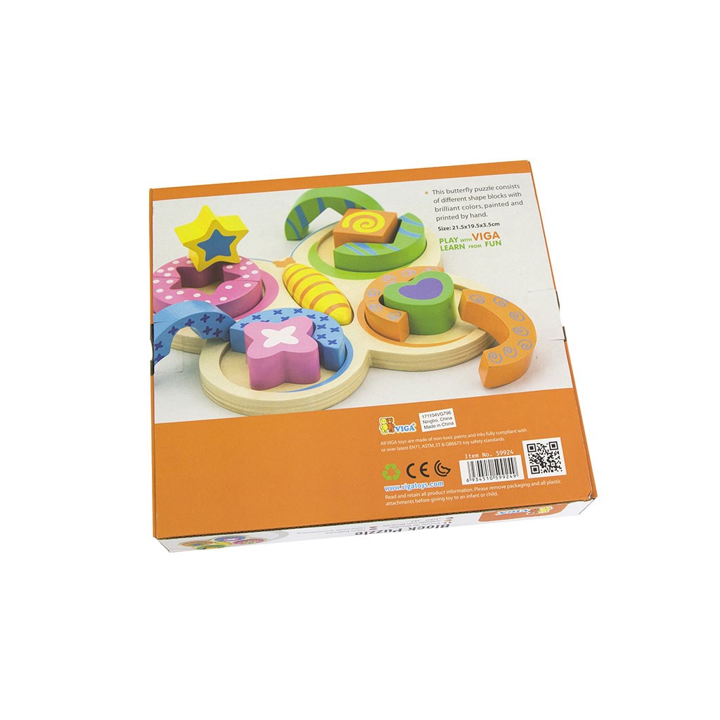 Lesena sestavljanka - metulj podjetja Viga je ena najlepših igrač, ki bo dolgo služila in vašemu otroku nudila mnogo let zanimive in kreativne igre.