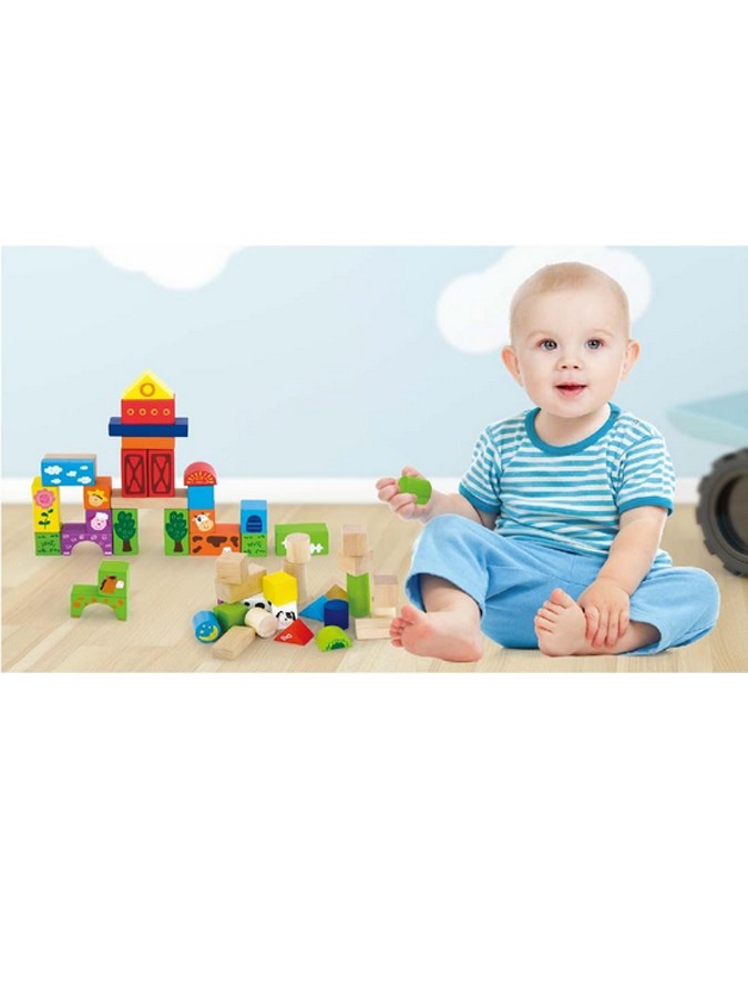 Lepo, pisane, lesene kocke v vedru Viga Farma prinašajo 50 čudovitih pisanih delov tudi za najmanjše graditelje. Gradbena sestavljanka bo trajala dolgo časa in vašemu otroku nudila mnogo let zanimive in ustvarjalne igre. Kocke imajo različne oblike, velikosti, čudovite barve in slike z motivi živalskega vrta. Tu boste našli oblike, kot so kocka, pravokotnik, trikotnik, valj, pravokotnik, most in še več. Znotraj pakiranja je navodilo za sestavljanje različnih zgradb, mest in objektov, ki spodbuja vašega otroka k ustvarjalni zabavi. To vedro s kockami služi tudi kot motorični pripomoček, ki otroke uči prepoznavati oblike in ravnati s kockami. Igrača pomaga izboljšati ročno spretnost in zmožnost, uči otroka prepoznavati oblike in barve, aktivira ter razvija smisel za opazovanje. Igrača je izdelana iz lakiranega lesa. Naša prednost je varnost in kakovost naših izdelkov, zato barve, uporabljene na igračah, niso strupene in ustrezajo varnostnim standardom (EN71 in ASTM). Primerna je za otroke od 2. leta starosti. Igrača je odlična izbira za čudovito darilo za naše najmlajše.