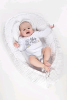 Luksuzno gnezdece s odejo za dojenčke New Baby. Gnezdece je praktičen in odlični pomočnik v prvih mesecih otrokovega življenja. Gnezdece je dvojne uporabe, lahko se uporablja z zunanje ali notranje strani. Dvojno prijazno gnezdece za dojenčke ustvarja občutek varnosti, dojenček se počuti zadovoljno kot pri mami v trebuščku. Dojenčkom se veliko lažje zaspi in so bolj mirni. Gnezdece ima praktično vrvico, s katero lahko prilagodite velikost, lahko se bolj zategne ali popolnoma sprosti. Gnezdece je izdelano iz dveh vrst tkanin, prva je zelo mehka in prijetna na dotik, nežna Minky tkanina z izboklinami za stimulacijo senzomotorike, druga pa je 100% bombaž. Del gnezdecа je blazina v obliki srčka in odeja okrašena s srčkom. Gnezdece se lahko uporablja na več načinov, lahko se uporablja v postelji, vozičku, na kavču ali na tleh. Dimenzije: približno 55x75 cm, notranje dimenzije: približno 35x59 cm. Odeja: Dimenzije: 65x47 cm. Sestava: ena stran 100% bombaž, druga stran minky 100% poliester, polnilo: antialergijska vlakna. Izdelek češke blagovne znamke.