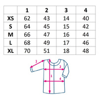 Pri izbiri velikosti se ravnajte po velikosti, ki jo trenutno nosite. Oblačilo je izdelano iz elastične tkanine, zato se prilagodi velikosti nosečniškega trebuščka in spreminjajočim se oblikam telesa. Oblačila se merijo na ravni, zato najbolje primerjate dimenzije iz tabele (zadnja fotografija) z dimenzijami oblačil, ki vam trenutno ustrezajo. Najkakovostnejše zračne tkanine, ki so prestale stroge teste Oeko-Tex Standard 100. Zaradi tega je oblačilo mehko in prijetno na dotik za mamo in otroka. Sestava: 92% bombaž, 8% elastan. Dolžina rokavov 7/8.