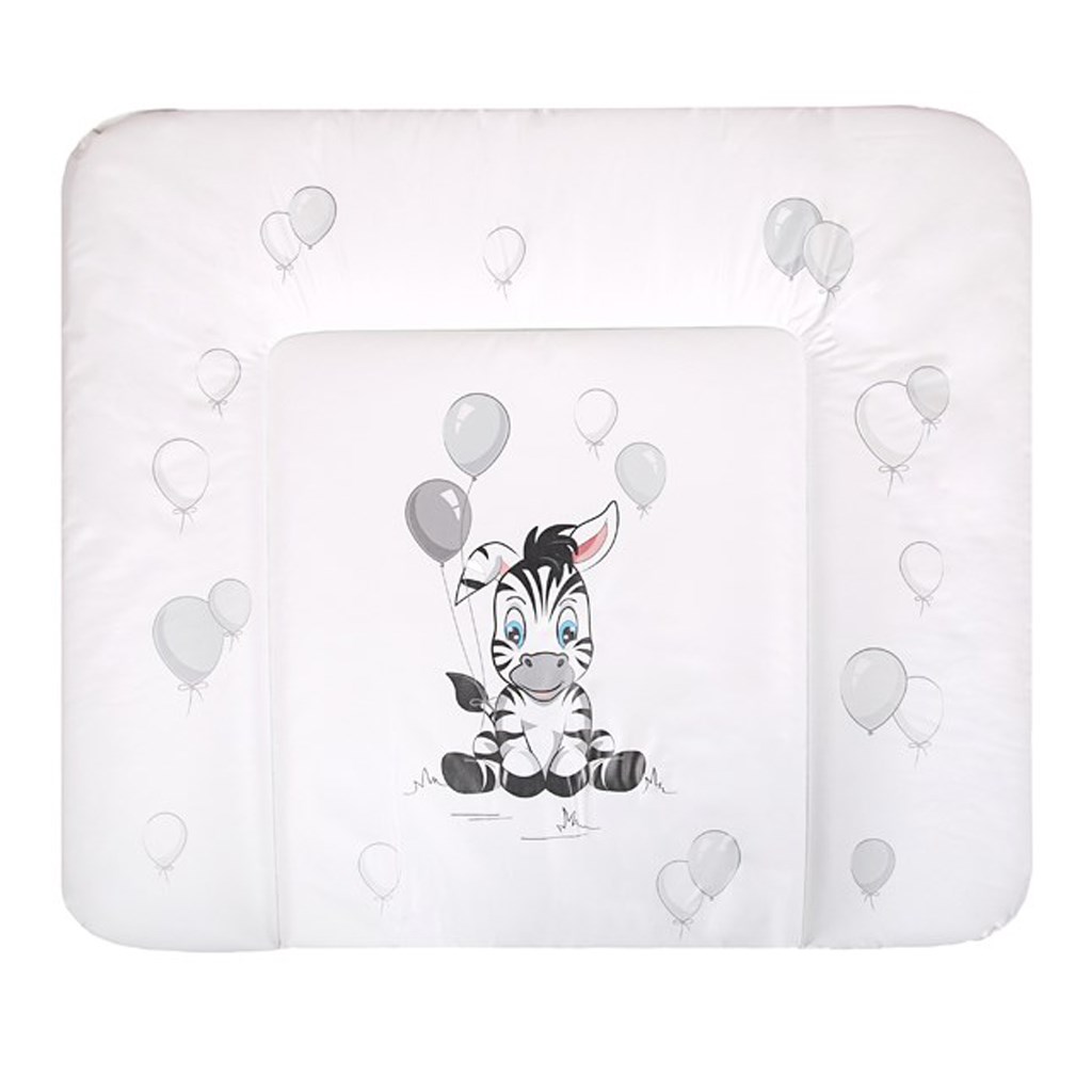Praktična mehka previjalna podloga New Baby Zebra iz vodoodpornega plastičnega materiala. Podloga ima prijetne pastelne barve in jo krasi slika zebre. Napolnjena je s poliesterom in jo lahko uporabite na komodi ali drugem mestu za previjanje vašega dojenčka. Zaradi nizke teže je prenosna. Narejena je iz kakovostnega materiala, ki ne vsebuje škodljivih snovi in je prijazen do najnežnejše otroške kože. Material: PVC.