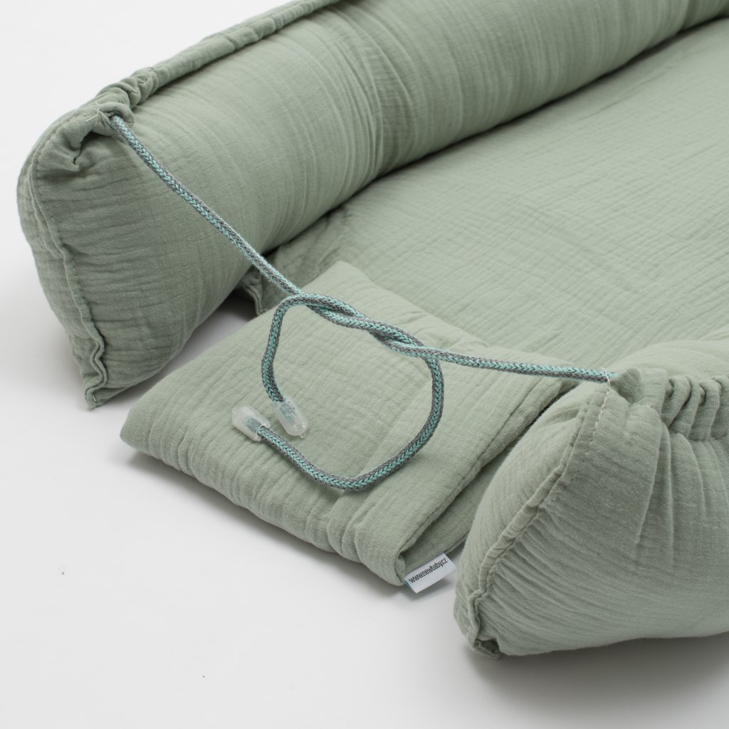 Mušelínovo gnezdo New Baby je izdelano iz najkakovostnejše bombažne preje. Omogoča udoben položaj za dojenčka in predvsem omogoča, da je dojenček nenehno blizu mamice. Med potovanjem lahko gnezdo vzamete s seboj, da lahko dojenček, ki je povezan z dišavo doma in svojim mestom, brezskrbo spi na drugem kraju. Gnezdo lahko postavite v posteljico, na kavč, na tla ali v voziček. V njem lahko otrok spi, počiva ali se igra. Gnezdo bo odličen pomočnik v vašem domu. Primerno za otroke od 0 do 12 mesecev.