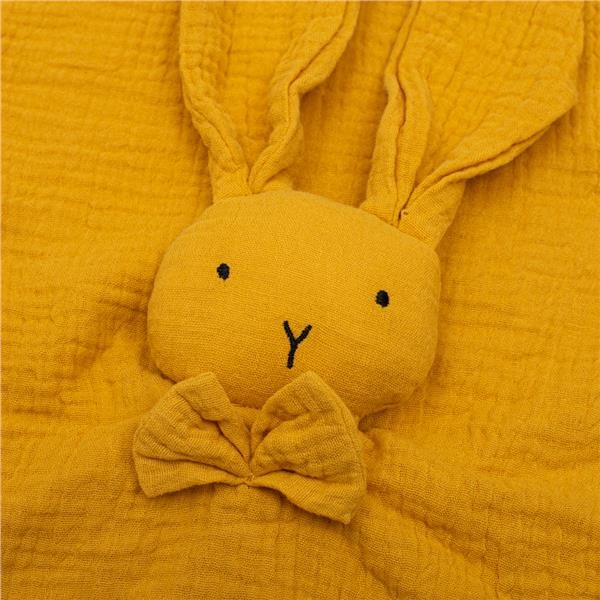 Muslinčki za uspavanje New Baby Rabbit je idealna plišasta igračka za naše dojenčke od prvih dni življenja. Izdelan je iz mehkega in prijetnega muslinastega blaga. Nudi občutek varnosti in olajša uspavanje. Mehak videz in estetske barve zagotavljajo estetsko in minimalistično zasnovo. Plišasta igračka se popolnoma ujema z našimi drugimi muslinastimi izdelki in tako ustvarja lepo nabor, ki ga lahko podarite kot darilo za otroško zabavo.
