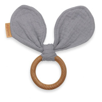 Varna kozica iz naravnega bukovega lesa, povezana z nežno muslinasto tkanino. Olajša pri rasti zobkov in istočasno lahko služi kot prva igrača.