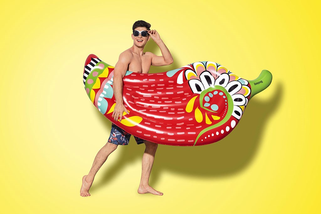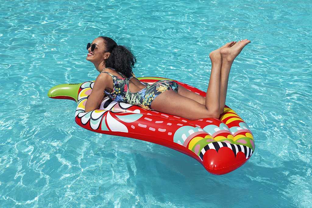Živahna grafika te matrace ustvarja vzdušje zabave in poskrbi, da bo kopanje s družino in prijatelji ob bazenu, jezeru ali na plaži še bolj zabavno. Vgrajen varnostni ventil zagotavlja stalni pritisk zraka, enostavno se napihuje, izpihuje in shranjuje.