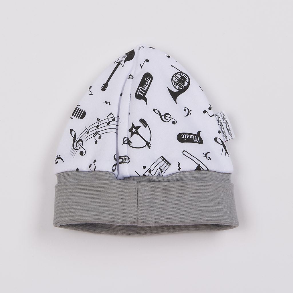 Originalna, igriva in hkrati vesela bombažna kapa za dojenčke New Baby Music. Kapa ima širok elastičen rob, ki lepo pokriva ušesa in ne pritisne. Kapo krasi tisk not in glasbenih instrumentov. Mehka, prijetna in zelo kvalitetna material zagotavlja zadovoljstvo vašega otroka. Naša igriva kapa je primerna za fante in dekleta. Sestava: 100% bombaž. Obseg okoli glave je približno 30 cm.