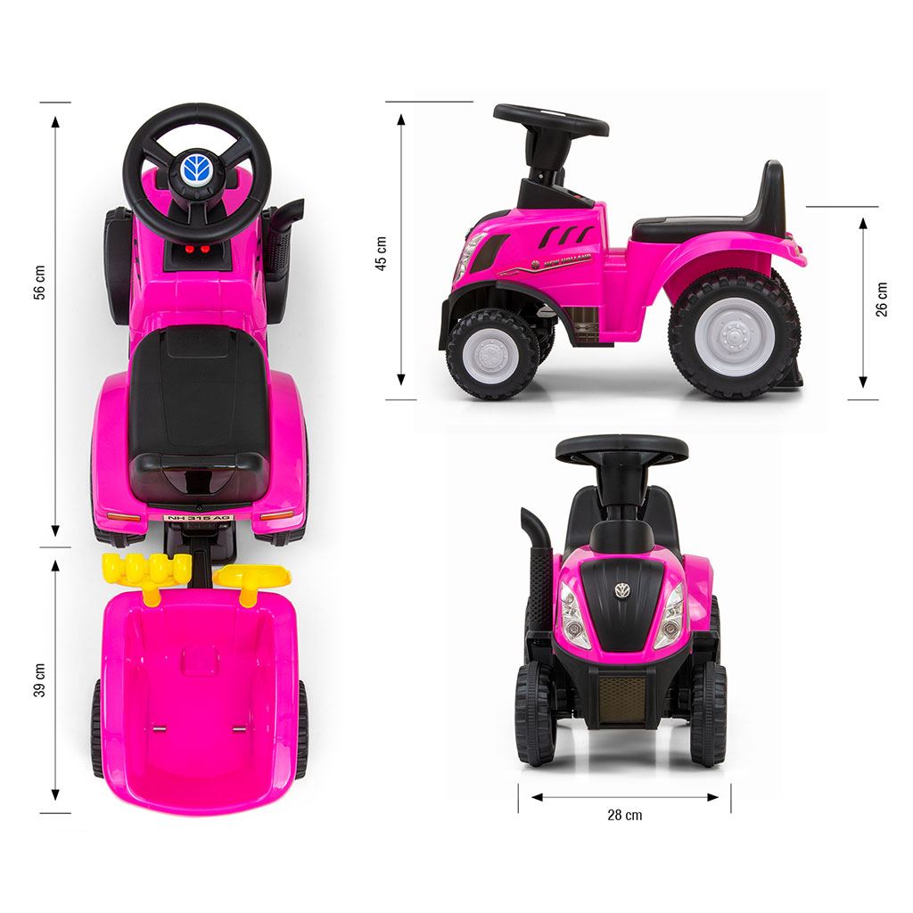 Večfunkcionalnost vozička zagotavlja, da otroku kmalu ne bo dolgčas in skozi igro razvija svoje ročne spretnosti in motoriko. Traktor ima prikolico s grabljami in lopato. Priklop prikolice preprečuje samodejno odklop. Dodatna prednost je interaktivni volan s horukom, ki bo skupaj z zvočnimi in svetlobnimi elementi igro naredil še bolj zanimivo!
