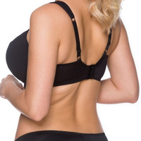 Polovično podložena dojenaška modrček New Baby Ella. Udoben, moden in zelo kakovosten materinski modrček, namenjen za večja prsa. Dodatna prednost so debelejši, nastavljivi naramnice, ki zagotavljajo največje udobje, kar vam bo olajšalo dojenje. Modrček je med drugim namenjen doječim ženskam, ki cenijo tudi seksi videz. Popolnoma podpira prsi in jim daje lep obliko. Skodelice so na zgornjem delu snemljive s klik-sponko, kar omogoča dojenje brez odpetja ali slačenja celotnega modrčka. Notranja stran skodelic je prekrita s 100% bombažno tkanino z antibakterijsko obdelavo. Modrček ima nastavljive naramnice. Zapiranje je s tremi kljukicami in tremi nastavitvami. Idealni dojenaški modrček za diskretno hranjenje dojenčka. Sestava: 70% poliamid, 20% elastan, 10% bombaž.
