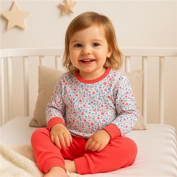 Lepo in praktično bombažno pižamo češke blagovne znamke New Baby. Pižamo z prikupnim otroškim motivom sestavljajo majica z dolgimi rokavi in hlače. Bombažna majica je zelo udobna, saj je narejena iz kakovostne bombažne tkanine, brez zapenjanja, z mehkim robom okoli vratu. Rob ne sme pritiskati, obvezati in majico je treba enostavno obleči čez glavo. Hlače imajo na hlačnicah prijetne robove in v pasu rob z gumico, ki ne pritiska. Uporaba kakovostnih materialov in prijeten kroj zagotavljata maksimalno udobje, oblikovno obstojnost in enostavno vzdrževanje. Za otroke je pižama veliko primernejša kot nočna srajca, saj se med spanjem bolj vrtijo, se odkrijejo in potem imajo hladne nožice in hrbet. S tem pa lahko pižama učinkovito prepreči. Sestava: 100 % bombaž. OEKO-TEX STANDARD 100.