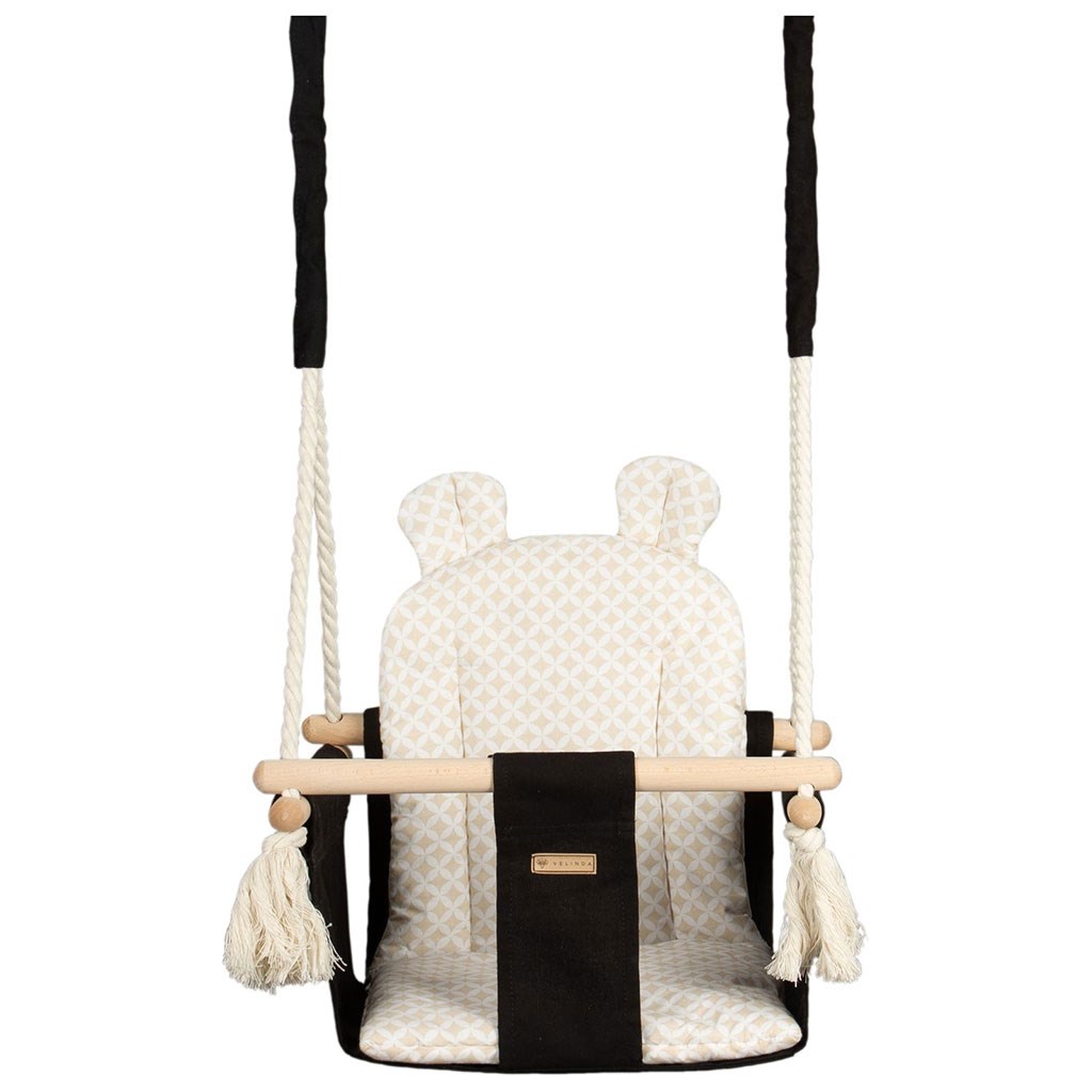 Otroška gugalnica z ušesi, primerna tako za notranje prostore kot tudi za zunanje.