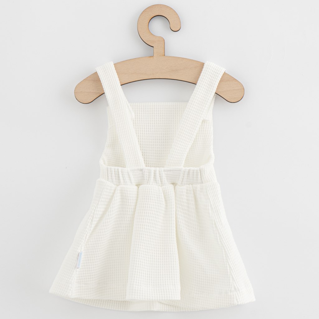 Lepa in trendy krilca češke blagovne znamke New Baby Laura za vse male princeske. Krilce s naramnicami, narejeno iz prijetnega materiala, boste cenili tako za vsakodnevno nošenje kot tudi ob različnih priložnostih, zahvaljujoč zelo zanimivi strukturi materiala. Krilce krasita lepa aplikacija medvedka. Zapiranje na gumbke. Za New Baby je zelo pomembno zadovoljstvo strank, zato vam ponujamo našo kolekcijo Laura. Sestava: 100% bombaž.
