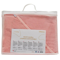 Lepi frotirna brisača za otroke češke blagovne znamke New Baby je izdelana iz mehke, kakovostne in zelo vpojne tkanine, zato je idealna za dojenčke in starejše otroke. Brisača prijetno ogreje po kopanju, praktična kapuca pa ščiti glavico dojenčka pred neprijetno hladnočo. Brisača popolnoma absorbira vlago in se zelo hitro suši. Nov, še kakovostnejši material, iz katerega je brisača narejena, ne pušča barve in ne povzroča alergijskih reakcij. Izdelana je iz dveh plasti materiala. Sestava: 100% bombaž Dimenzije: 100x100 cm. OEKO-TEX STANDARD 100. 240g/m2.