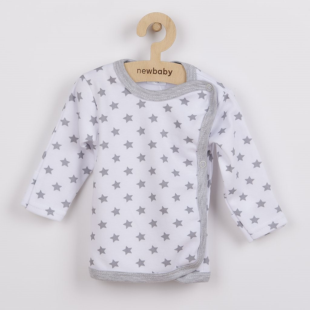 Lepa klasična dojenčkasta majica New Baby Classic II. Majica je enobarvna z zvezdicami. Zapira se s kamni na naramnicah in stranski strani, kar olajša oblačenje in previjanje. Rokavi majice se lahko zavihajo. Zavit rokav preprečuje praskanje z dojenčkovimi nožmi in ohranja ročice dojenčka tople. Majica je izdelana iz prijetnega, mehkega in kakovostnega materiala, v katerem se bo dojenček počutil zelo udobno. Za New Baby je zelo pomembno zadovoljstvo strank in prav zato vam ponujamo našo novo kakovostno kolekcijo Classic II. Vsebina: 100% bombaž.