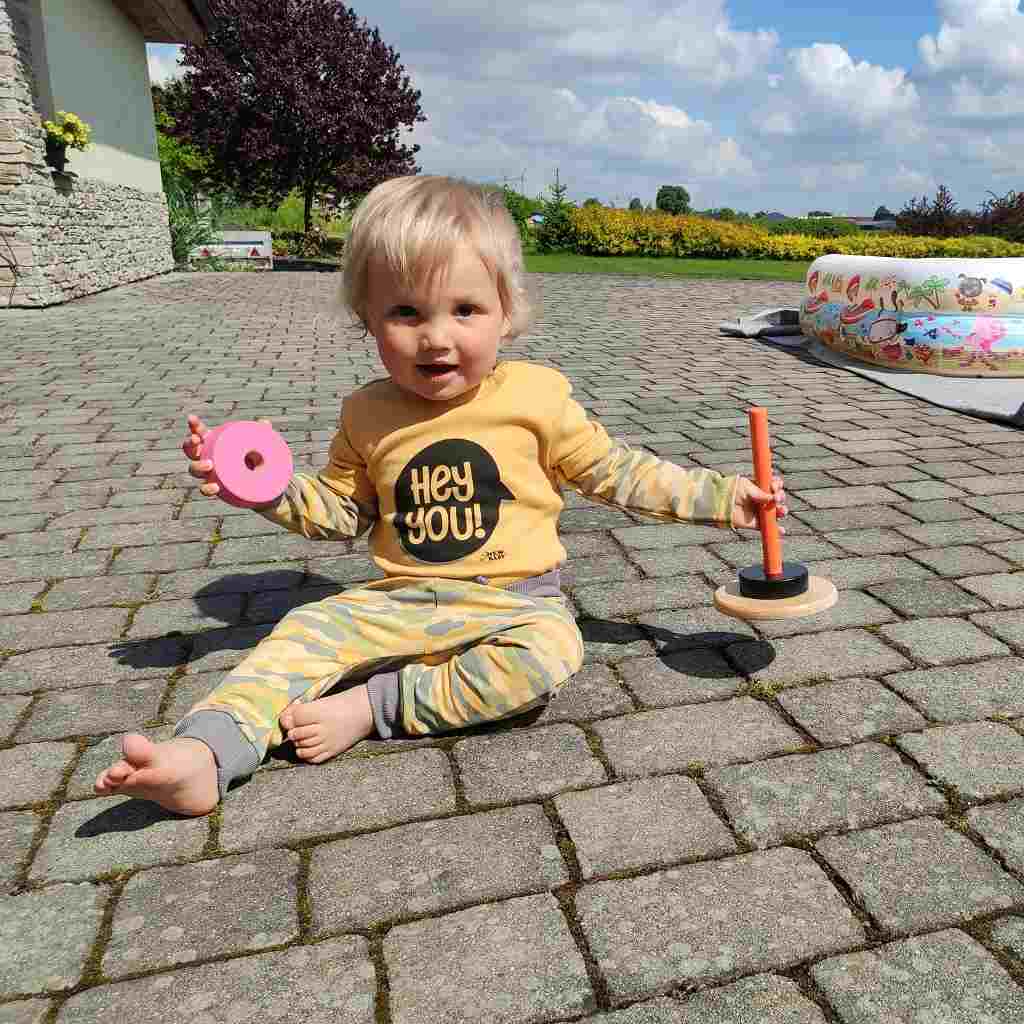 Stylna bombažna otroška majica češke blagovne znamke New Baby With Love. Majica z dolgimi rokavi in sivim obrobo okoli vratu in rokavov je okrašena z napisom Hey You!. Zapiranje na ramenu s gumbi olajša oblačenje. Majica je izdelana ob upoštevanju potreb malih otrok iz zelo prijetnega in nežnega materiala. Moderna in koristna kos v omari malih otrok, ki ima široko uporabnost. Sestava 100% bombaž.