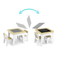 Otroški pohištveni set Olaf Blocks - miza in dve stolici je večnamenski komplet zasnovan tako, da zagotovi otrokom udobje in prostor za kreativno igro in učenje. Miza z dvema stolicama ima diskreten barvni videz, ki ji daje moden in estetski izgled, primeren za vsako notranjost.
