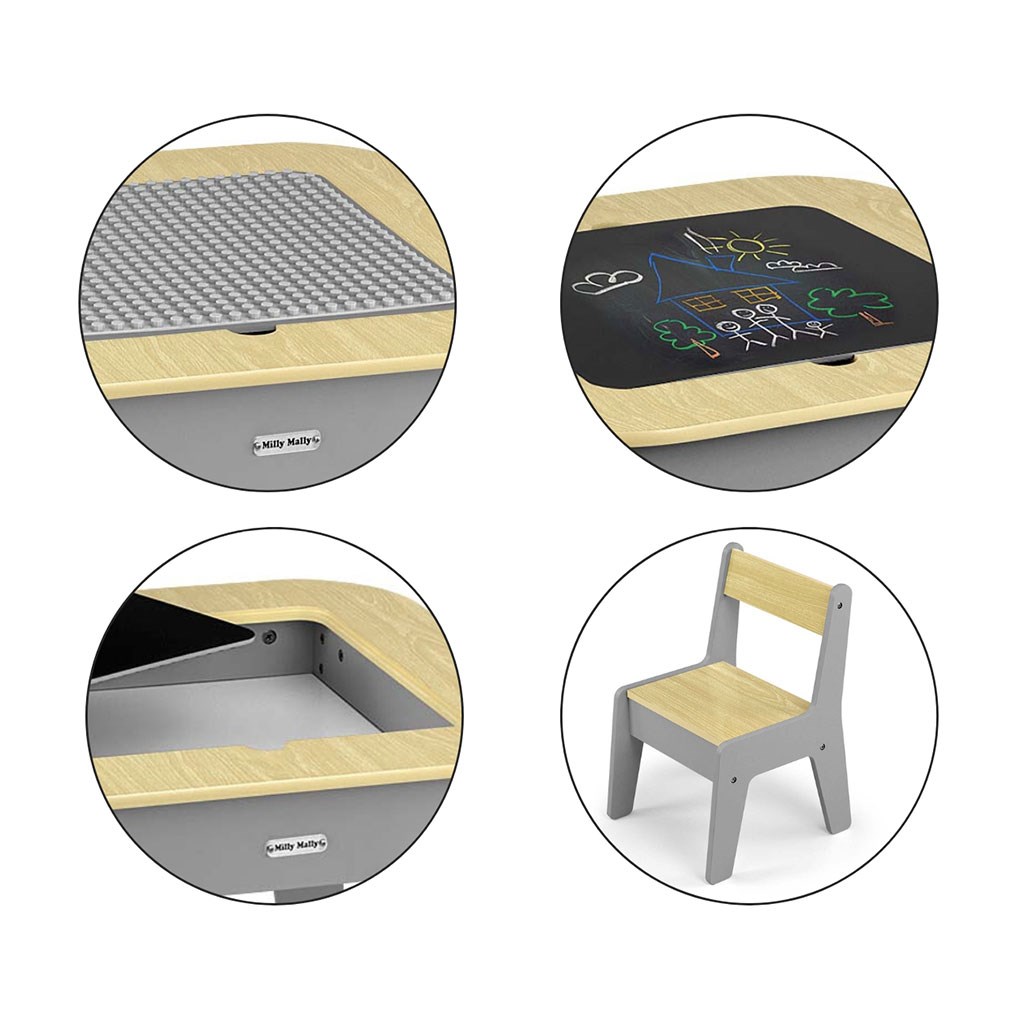 Set Olaf Blocks izstopa z edinstveno mizo – ena stran je prilagojena za gradbene kocke, kar jo naredi za idealno osnovo za gradnjo. Druga stran je gladka in popolna za risanje, pisanje ali druge ustvarjalne dejavnosti. Plošča je snemljiva, pod njo pa se nahaja prostoren prostor za shranjevanje, ki olajša shranjevanje igrač, kock ali ustvarjalnih potrebščin, kar pripomore k ohranjanju reda.