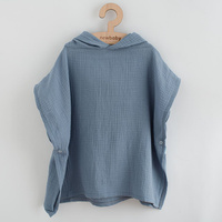 Otroška muslinova pončo New Baby Feeling. Stilsko pončo, ki ni primerno le za doma, ampak tudi za plavanje ob bazenu ali vodi. Muslinovo pončo je zaradi materiala lahko, zračno in lepo vpija. Pončo bo zaščitilo otroka pred mrazom in bo služilo tudi kot nežna brisača. Zaradi prostornega edinstvenega kroja in ljubkih ušes bo otrokom prineslo veliko veselja. S svojim krojem bo raslo z otrokom in se prilegalo vsaki postavi. Izgleda odlično in ga je mogoče uporabljati skozi vse leto. Za lažje oblačenje in slečenje so na boku gumbi. S tem se ustvari prostor za roko ali pa se kroj pusti ohlapen. Sestava: muslin-100% bombaž. Dimenzije: 50 cm brez kapuce, širina: 59 cm.