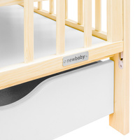 Predstavljamo otroško leseno posteljico češke blagovne znamke New Baby z novim sistemom za spuščanje stranske strani, razvitim s strani strokovnjakov za večjo varnost, udobje in enostavno spuščanje z eno roko.
