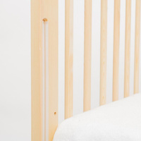 Celotna je izdelana iz borovega lesa. Vsi materiali in surovine uporabljeni pri proizvodnji so odobreni in certificirani, zato je pohištvo New Baby povsem varno in trajno.