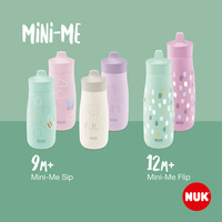 Otroška steklenička NUK Mini-Me Sip nerjaveče jeklo 300 ml (9+ m.). Nova steklenička NUK Mini-Me Sip je primerna za otroke od 9 mesecev. Primerna za otroke – na sodoben in minimalističen način. Praktična in obenem stilna. Nerazbitna plastika ustnika je izdelana iz več kot 90 % naravnih surovin. Inovativni ustnik se zlahka upira otroškim zobkom. Jasna zaveza trajnosti in kakovosti.