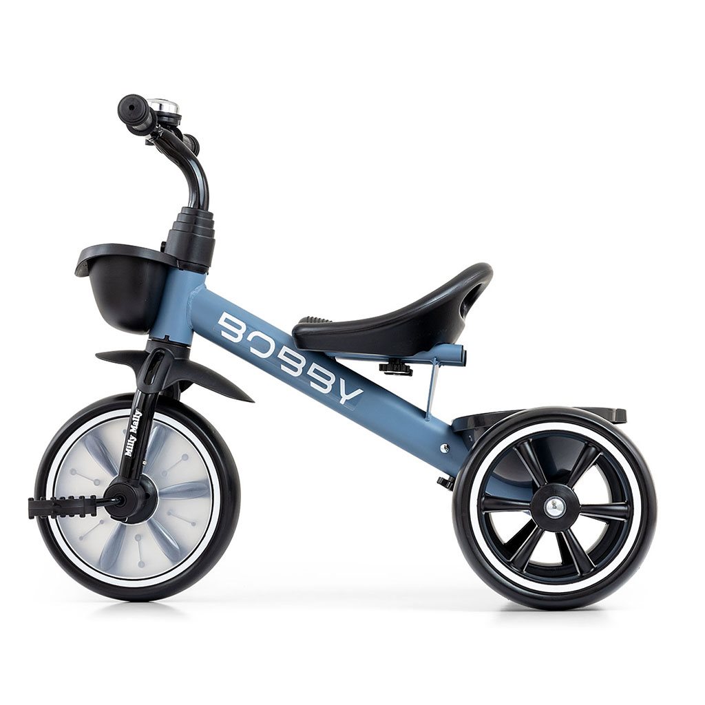 Trikolo BOBBY je bilo ustvarjeno z mislijo na udobje in varnost malčkov ter udobje staršev. Idealna rešitev za aktivne malčke, ki jih vožnja v vozičku dolgočasi. Bobby je stabilno in varno trikolo za vaše otroka z brezčasnim dizajnom in udobnim oblikovanim sedežem. Sprednje kolo je zavarovano, da se ne ujamejo nogice vašega otroka, ko naš mali kolesar poganja pedal. Krmilo kolesa je odstranljivo s pritiskom na gumb na sprednji strani krmila.