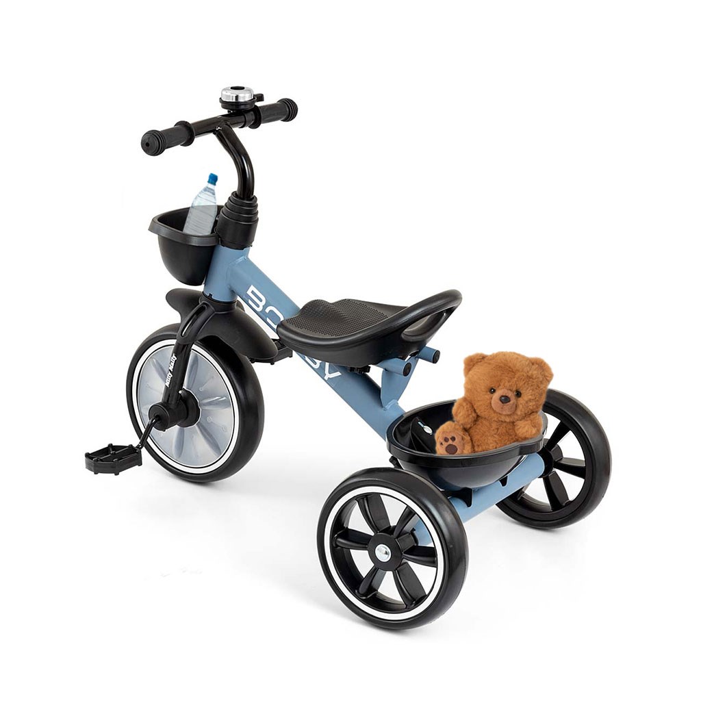 K udobju Bobby kolesa prispeva čudovito zasnovan in oblikovan sedež, ki služi tudi kot ročaj za prenašanje. Kombinacija kovinske konstrukcije in komponent, izdelanih iz najkakovostnejših materialov, zagotavlja trajnost, ki bo delovala v vseh pogojih. Široka in trpežna kolesa iz EVA pene zagotavljajo vzdržljivost in dolgo uporabo. Trikolo BOBBY z odstranljivimi pedali ima 2 košarici, eno nameščeno na krmilu, drugo pa na zadnjem delu kolesa, npr. za igrače. Med vožnjo na kolesu otrok razvija grobo motoriko, moč in mišice nog, ohranja ravnotežje in izboljšuje gibalno koordinacijo, s čimer se pravilno in zdravo razvija.