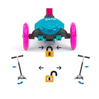 Da bi zadovoljili potrebe naših majhnih dirkačev, smo ustvarili skiro ZAPP. Je idealna rešitev za aktivne otroke, ki imajo radi gibanje. Zapp je izdelan iz kakovostnih materialov, kar ga naredi odličnega za sprehode ali norčije po hiši. Kovinska konstrukcija zagotavlja trpežnost izdelka. Skelet ima tudi zavoro in blatnik na zadnjem kolesu. Krmiljenje in zavijanje delujeta na principu spreminjanja telesne ravnotežja. Velika prednost skiroja so 3 kolesa, ki nudijo stabilnost in varnost. Otroke bo navdušilo tudi svetleče sprednje kolo med vožnjo.