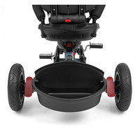 Izdelan je iz kakovostnih in trpežnih materialov. Ima moderno konstrukcijo, udobno in ergonomično oblikovano sedežno mesto, ki se vrti za 360 stopinj, kar otroku omogoča, da potuje v smeri ali proti smeri vožnje. Za udobje in varnost med vožnjo skrbi varnostna ograja, trislojni varnostni pasovi, udobni oporniki za noge in velika napihljiva kolesa, ki odlično absorbirajo udarce in zagotavljajo dobro oprijemljivost. Trosedežno kolo lahko upravlja tako otrok kot tudi starš s pomočjo nastavljive ročice za potiskanje. Po odstranitvi vodilne palice, zložljive strehe, ki ščiti pred soncem, ali drugih komponent bo služilo kot trokolka. Trosedežno kolo se lahko uporablja tudi kot alternativa golfskemu vozičku. Za shranjevanje igrač ali potrebščin za otroka je tu praktičen shranjevalni koš.