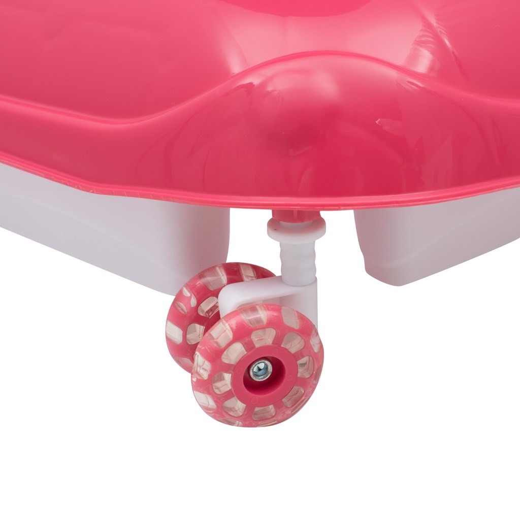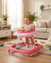 Multimedijski hoduljček Baby Mix s silikonskimi kolesi. Hoduljček je opremljen s udobnim ergonomskim sedežem, ki zagotavlja pravilno držo hrbtenice. Multimedijski panel vsebuje različne svetlobne efekte, trobento z volanom, ki ga je mogoče obračati, gumbe za predvajanje melodij in dve luči. Čudovit hoduljček s igračami bo očaral male raziskovalce in jim omogočil še daljše igranje. Hoduljček je opremljen s posebnim sistemom proti prevračanju, ki zagotavlja udobje in varnost vašemu otroku.