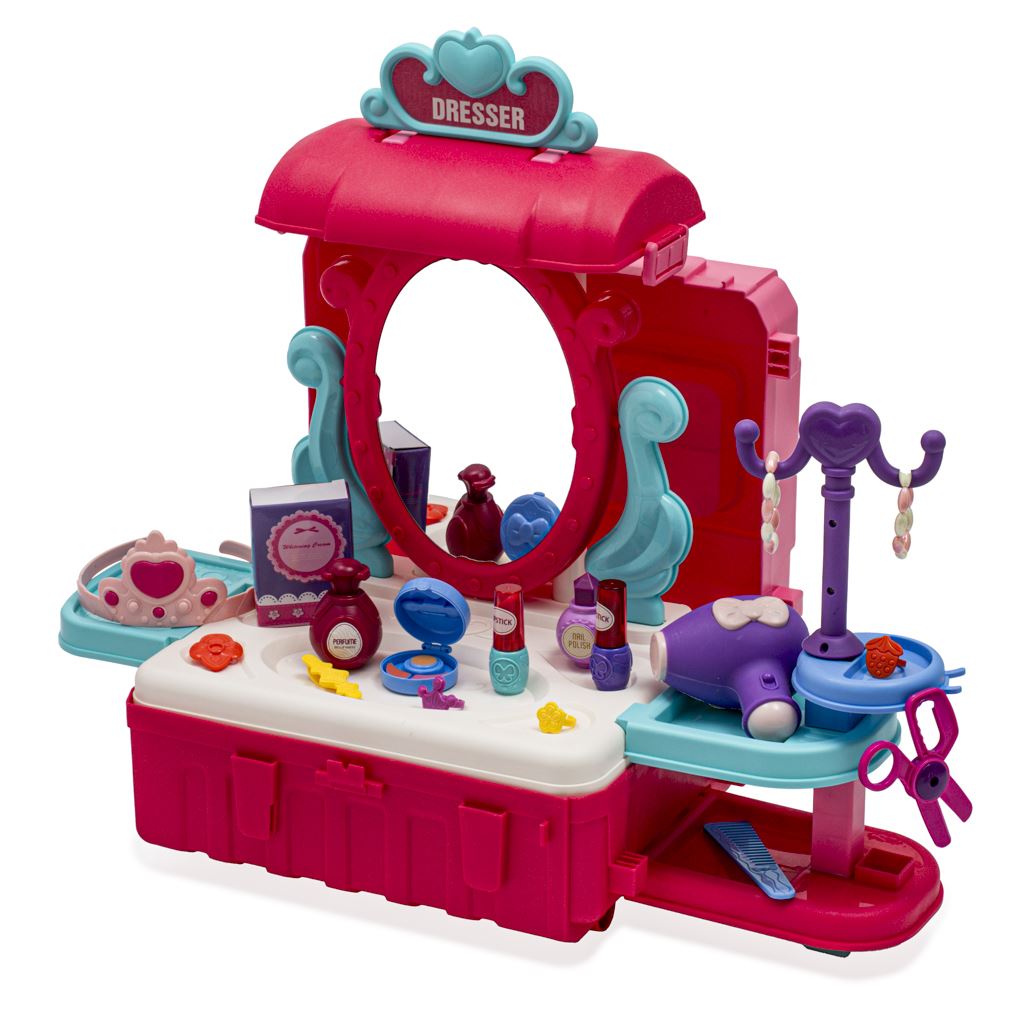 Dekliški kozmetični kovček 3v1 je praktičen in stiliziran dodatek za vse ljubiteljice lepote. Ta kovček vsebuje makete kozmetičnih izdelkov, ki dekletom omogočajo eksperimentiranje z ličenjem in nego kože.