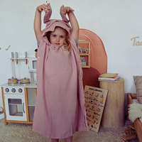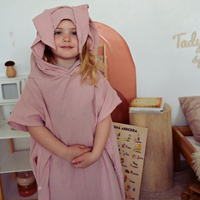 Otroški muslinasti pončo New Baby Feeling. Stylish pončo ne samo za doma, ampak tudi za plavanje ob bazenu ali ob vodi. Muslinasti pončo je zaradi materiala lahek, zračen in lepo vpija vlago. Pončo bo zaščitil otroka pred mrazom in bo služil tudi kot mehak brisača. Zaradi prostega edinstvenega kroja in ljubkih ušes bo otrokom prinesel veliko veselje. S svojim krojem bo rasel z dojenčkom in se prilegal vsaki postavi. Videti je odlično in ga je mogoče uporabljati skozi vse leto. Za lažje oblačenje in slačenje so na strani gumbki. Tako nastane možnost za otvor za roko ali pa se kroj pusti prostoren. Sestava: muslin-100% bombaž. Dimenzija: 80 cm brez kapuce, širina: 59 cm.