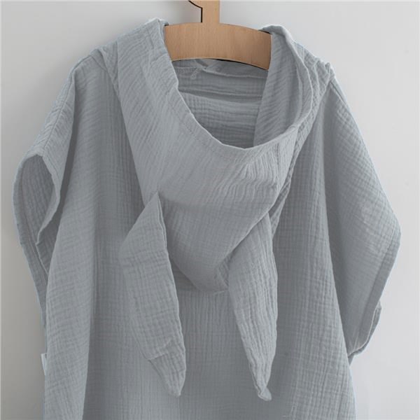 Otroški muslinast pončo New Baby Feeling. Stylish pončo ne le za doma, ampak tudi za plavanje ob bazenu ali ob vodi. Muslinast pončo je zaradi materiala lahek, zračen in čudovito vpojen. Pončo bo zaščitil otroka pred mrazom in služil tudi kot nežna brisača. Zaradi prostornega edinstvenega kroja in ljubkih ušes bo otrokom prinesel veliko veselja. S svojim krojem bo rasel skupaj z dojenčkom in se prilegajoč vsaki postavi. Izgleda odlično in ga je mogoče uporabljati skozi vse leto. Za lažje oblačenje in slačenje so na bokih gumbki. Tako se ustvari možnost za odprtino za roko ali pa se pusti kroj prost. Sestava: muslin - 100% bombaž. Dimenzije: 35 cm brez kapuce, širina: 40 cm.