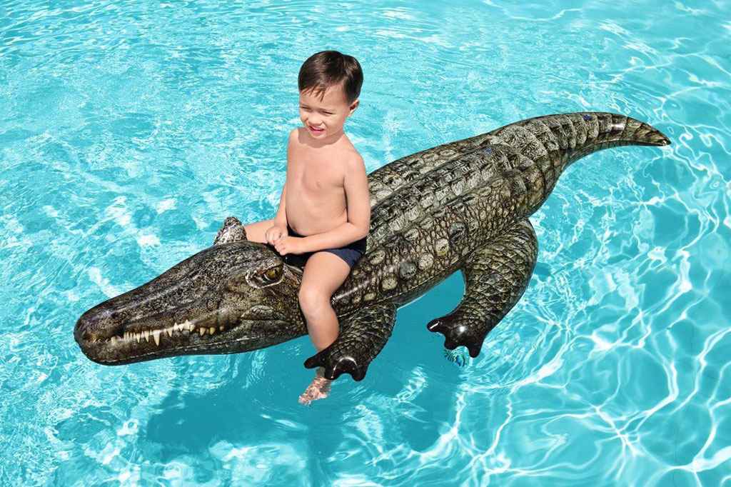 Otroški napihljiv krokodil za vodo Bestway. Krokodil ima trden ročaj za udobno držanje. Vaše otroke bo zagotovo zabaval in osvežil v vročih poletnih dneh. Krokodila lahko uporabljate v bazenih in pri morju. Primeren za otroke od 3. leta naprej. Sestava: PVC. Dimenzije: cca 193x94 cm.
