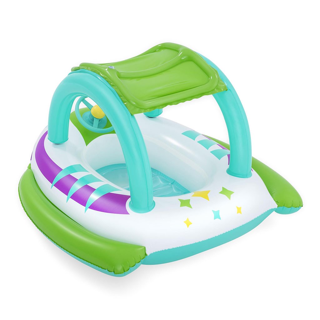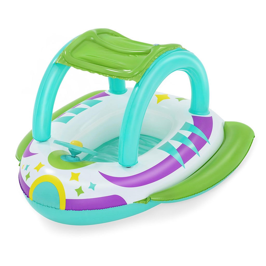 Otroški napihljiv vesoljski čoln Bestway. Lep barven otroški čoln v obliki vesoljske ladje s streho, ki ščiti otroka pred sončnimi žarki. Vsi otroci obožujejo igro v vodi, zato privoščite svojim otrokom pravljično lenarjenje na vodi.