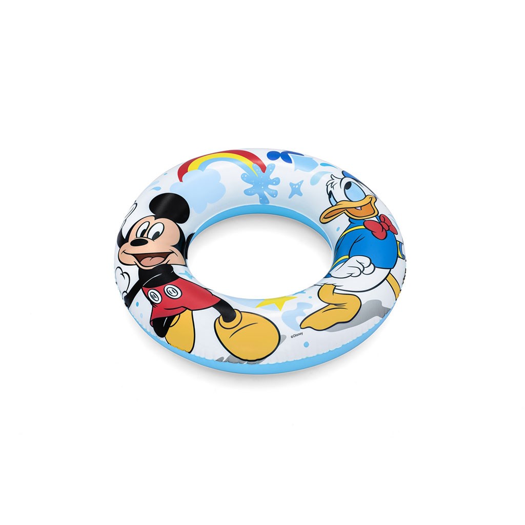 Otroški napihljiv krog Bestway Mickey Mouse. Čudovit barvit napihljiv krog s potiskom Mickey Mouse, ki ga bo vsako majhno otroka vzljubilo. Napihljiv krog je varen prijatelj vašega otroka v vodi. Otroci, ki še niso popolnoma obvladali plavanja, ga zagotovo morajo uporabljati. Mickey Mouse je priljubljena otroška figura in ne bo ovirala otroka. Primerno za otroke od 3 do 6 let. Dimenzija: cca 56 cm. Sestava: vinil.