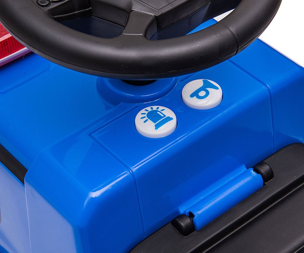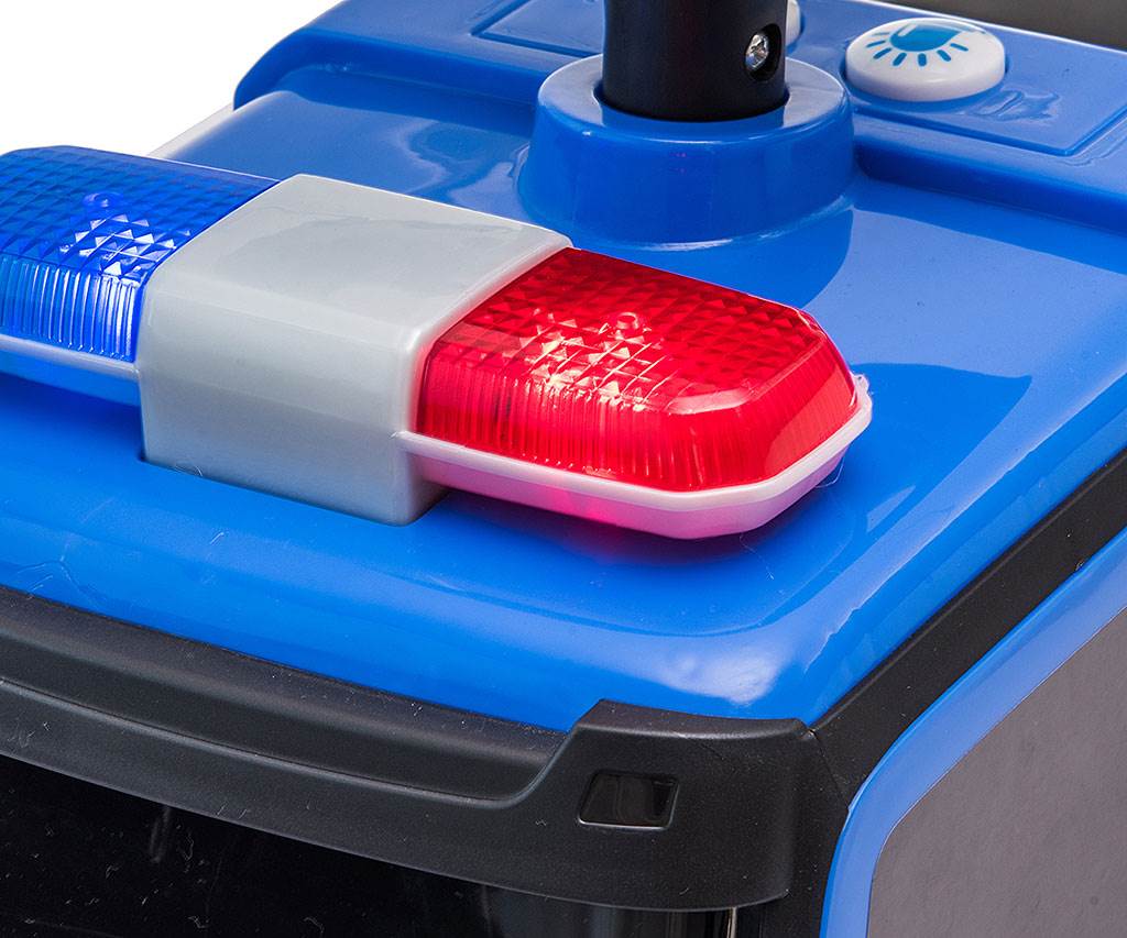 Večfunkcionalnost vozička zagotavlja, da se vaše otrok hitro ne bo naveličal in bo skozi igro razvijala svoje ročne spretnosti in motoriko. Odraslo je bilo opremljeno s signalnimi in opozorilnimi lučmi. Dodatna funkcija je interaktivni volan s piščalko, ki v kombinaciji z dvema gumboma za zvok in svetlobo (nameščenima na armaturni plošči) naredi igro še bolj zanimivo!