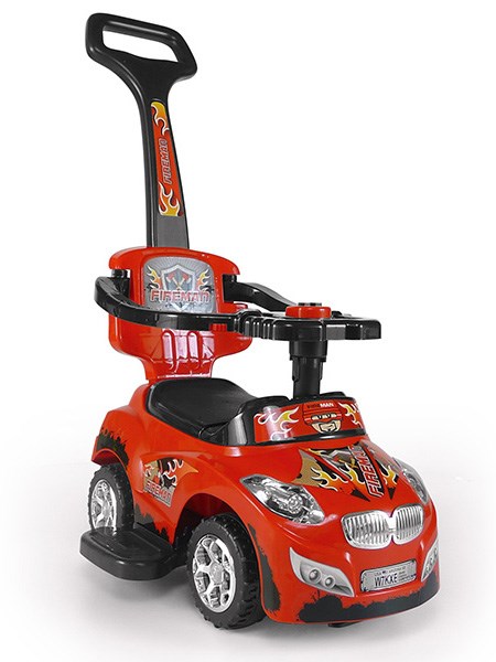 Otroški avtoček Milly Mally Happy. Avtoček ima na volanu gumb, ki po vklopu predvaja melodije, in gumb, ki po vklopu izdaja zvok klaksóna. Avtoček lahko uporabite kot odrivanje, ali pa po dodajanju vodila, stopničke in ročaja lahko otroka vozite sami in ga imate pod nadzorom. Izdelan je iz kakovostnega plastičnega materiala. To je odlična in varna igrača. Oblika igrače pomaga razvijati motorične sposobnosti otroka v času, ko se uči hoditi. Zaobljeni robovi in trdna kolesa zagotavljajo varnost pri igri. Baterije niso vključene v paket.